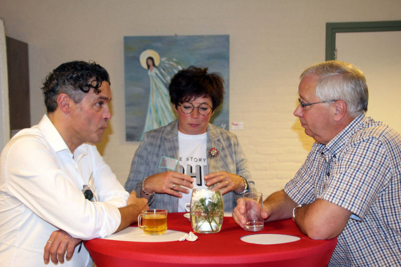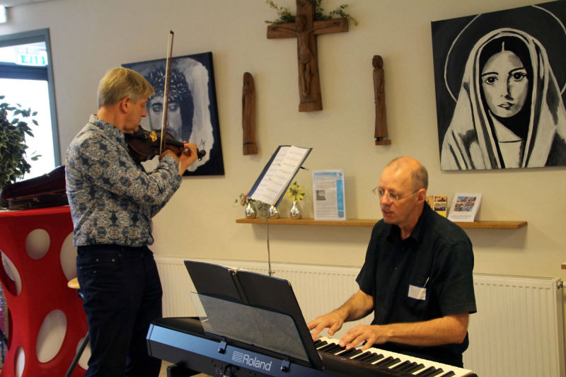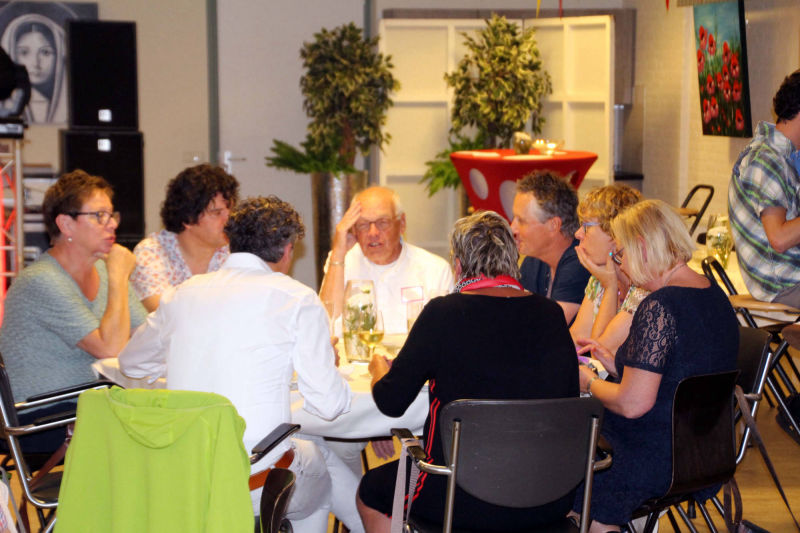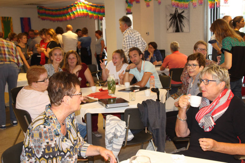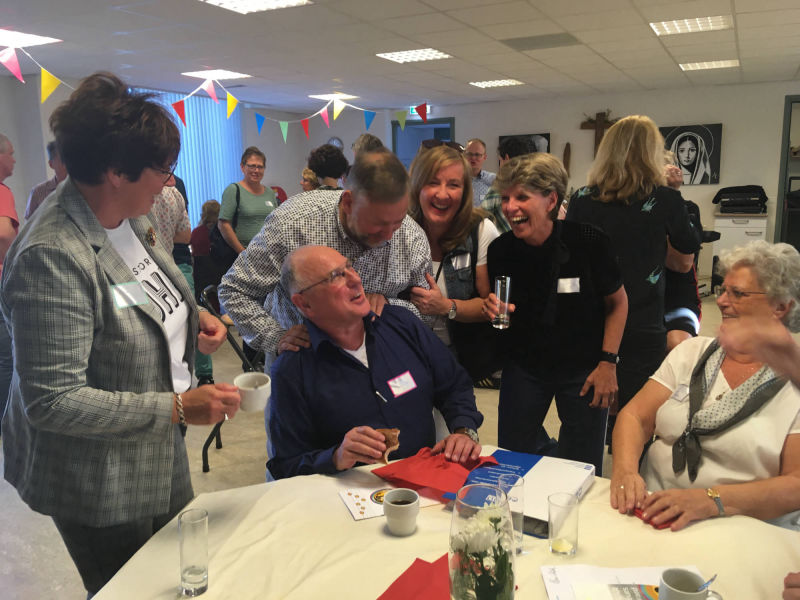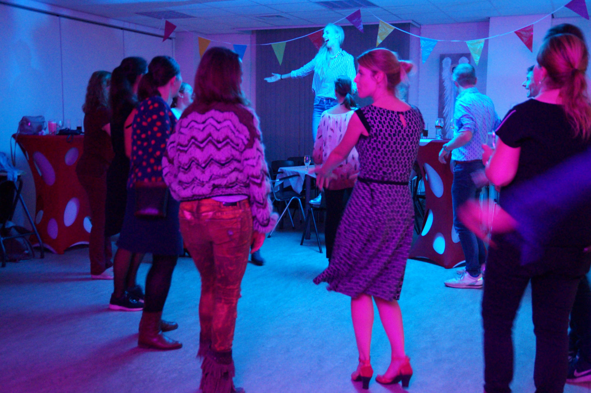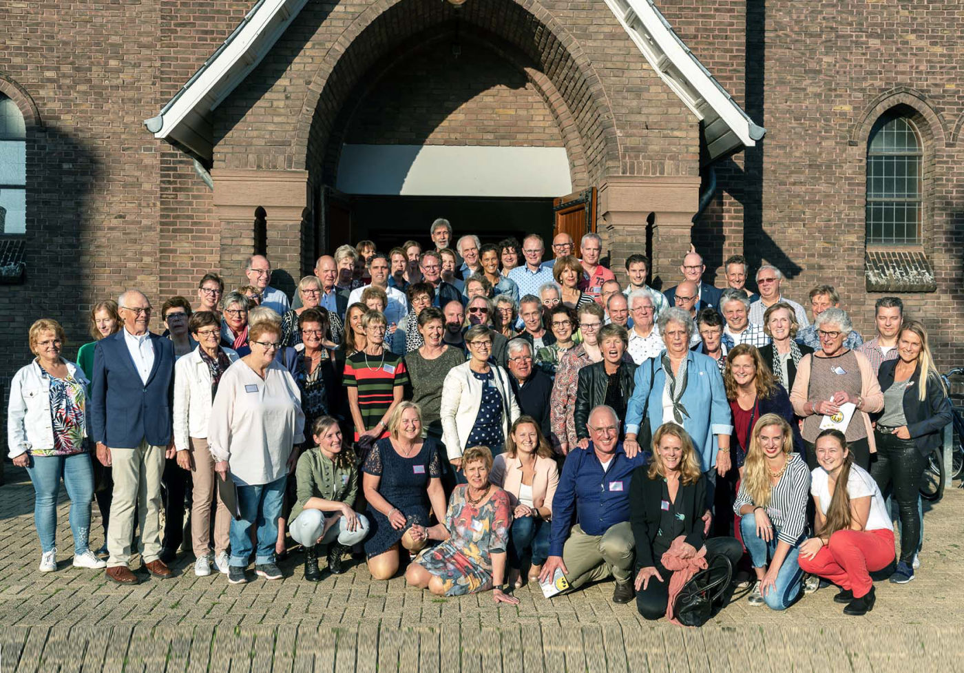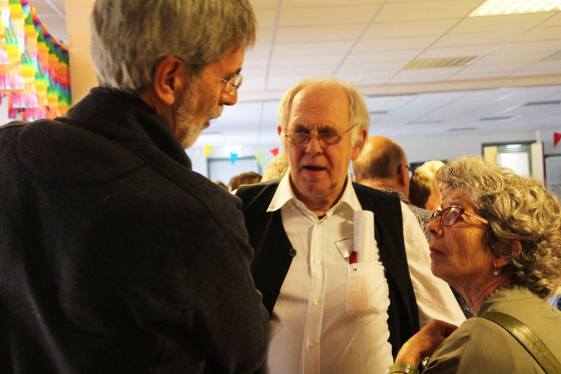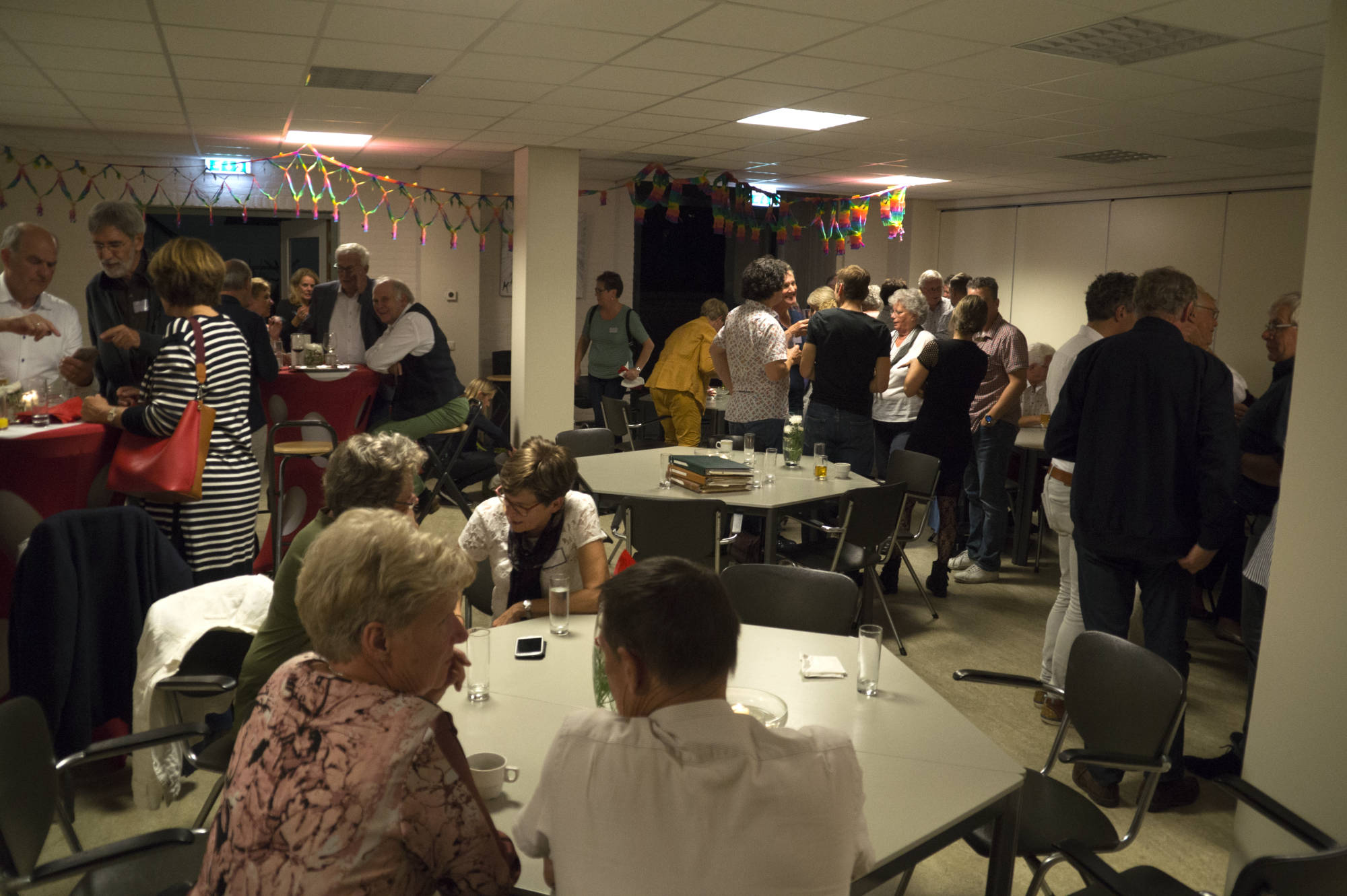 Voor het gezamelijke slotlied van alle aanwezige koorleden van de afgelopen 50 jaar moest wel even gerepeteerd worden.